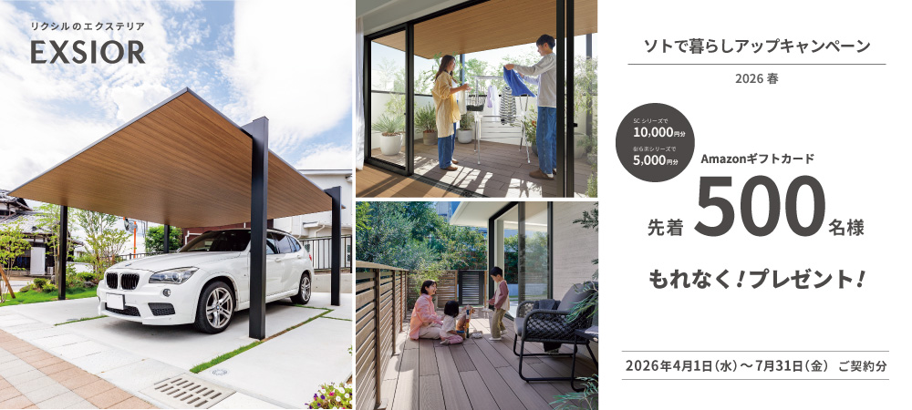 4月1日(水)から7月31日(金)までの期間、対象商品をエクステリアマイスター店にてご契約いただいたお客様を対象に、